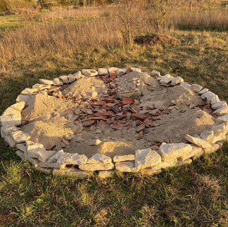 Alors dans l'ordre, trouver une zone en hauteur sur le terrain (pas très facile dans un ancien champ à vaches). Délimiter la zone avec des pierres, enlever la croute de terre, creuser un peu le sol. Les pierres, nous les avons trouvées dans la commune voisine où le muret était détruit.