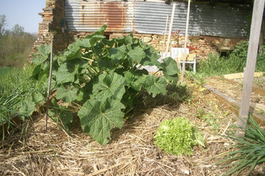 Celle qui longe la route comprend : 1 merisier, 2 cognassiers, 2 pruniers, 1 framboisier rampant, 1 vigne grimpante, 1 caraganier, 1 rose trémière, des fleurs en bulbes, de la consoude blanche. Nous y avons ajouté cette année pour la saison : tomates, haricots à rames, oignons (en bordure), pois chiches, patates douces.